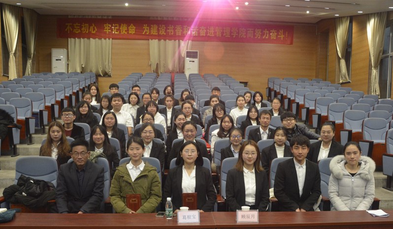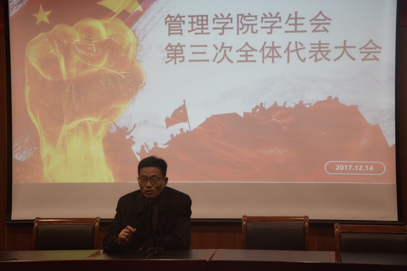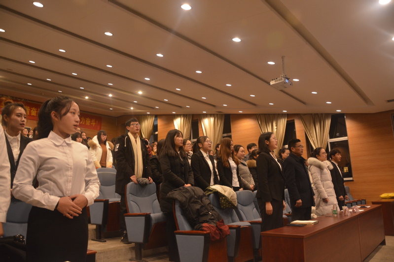 本次会议分为六项内容。首先由黄义茹同学带领全体与会者一起唱国歌。接着顾辰月老师代表院团总支进行致辞,明确员工会的重要地位,在肯定上一届员工会干部们做出贡献的同时,也对新一届的员工会成员提出希望及要求。随后,上一届主席团成员罗霞同学做工作总结汇报,指出员工会各部部长要理清部门职能和义务,认识到各部门的不足之处,并对新一届员工会今后的工作表达了美好期望。新一届员工会主席团成员丁晨曦同学,也作为代表进行发言,阐述新一届员工会工作的构想,并表明全体成员全心全意为同学服务的决心。葛书记通过对历史事件的讲述,对党的十九大精神的理解,为本次会议做总结性发言,希望同学们能够牢记历史,树立坚定的理想信念,志存高远,脚踏实地,做好今后的工作,发挥模范带头作用。最后,葛书记及顾老师为上一届院员工会主席团成员和各部部长颁发了聘书。