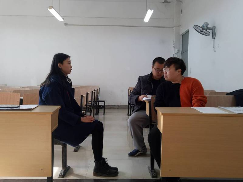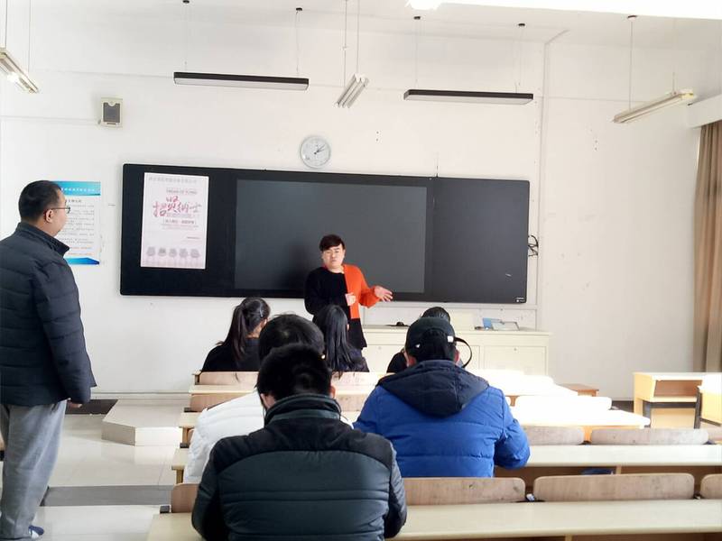 参加面试的同学很珍惜这次机会,早早来到教室准备。此次面试以笔试为主,同学们认真答题,随后,用人单位领导与同学热切交流,认真聆听同学们的意见并指出有效建议。最后,同学们做了一次自我介绍,以加深对同学们的印象及更加了解同学们的独特特质。