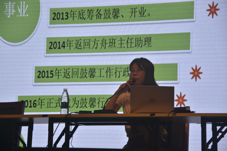 陈杏杏为公司12届社会工作专业的残障员工,从小就失去了右臂,身体上的残缺并未影响她奋发向上、努力拼搏的决心。毕业之后她很幸运地进入南京市华侨街道担任残疾人专职委员,兢兢业业地工作,取得了诸多成绩,工作稳定之后她并未满足于现状,于去年考取了中华女子公司社会工作专业的研究生。她以“不忘初心,砥砺前行”为题,讲述了自己的成长过程并着重,就“考研”开展了细致的介绍分析,以自己的考研历程为实例,向同学们分享了许多珍贵有益的知识,在演讲最后仍鼓励同学们要不忘初心,砥砺前行。张浅浅则为公共事务管理专业13届毕业生,毕业之后进入南京市最大的残疾人托养机构方舟启智中心工作,长期活跃在助残第一线,目前已经晋升为该中心行政主管。她从家庭、生活、职业发展三个方面向员工展示了她毕业后的诸多经历,启发引导同学们认识到自身发展以及保持努力的重要性。