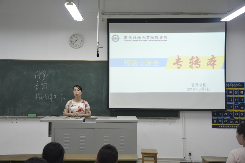 1502班张阳同学向我们同样介绍了有关专转本的重点内容,她指出,打基础、专项知识积累和冲刺专题三个方面十分重要,大三时期的时间和进度安排较为密集,要学会舍弃,争取最大的效率。接着,1503班余晓楠同学向我们全面剖析了各考试科目的分值安排和侧重点,然后向我们分享自己的座右铭“越努力、越幸运”,与我们共勉。