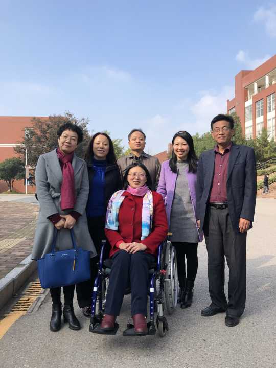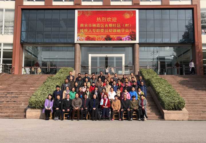 大家在图书馆门口合照留念,栖霞区首期社区残疾人专职委员培训正式拉开帷幕!