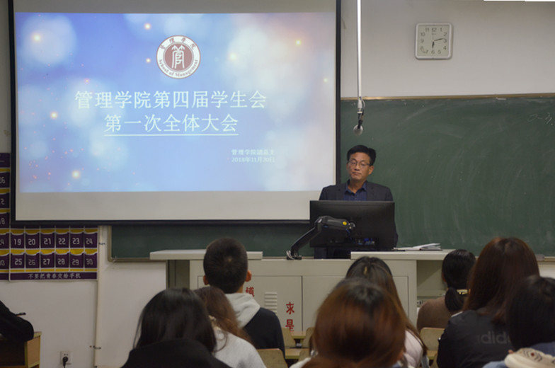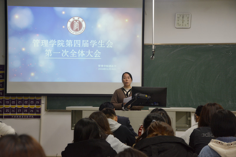 曾李静主席进行发言,讲述了各位同学对自我管理的三部分:学习上的管理,生活上的管理,工作上的管理。她表达了对各位同学的期望,希望通过员工会,让同学们能够得到一定的锻炼,在实践中不断丰富自己,把握机会,进步成长。
