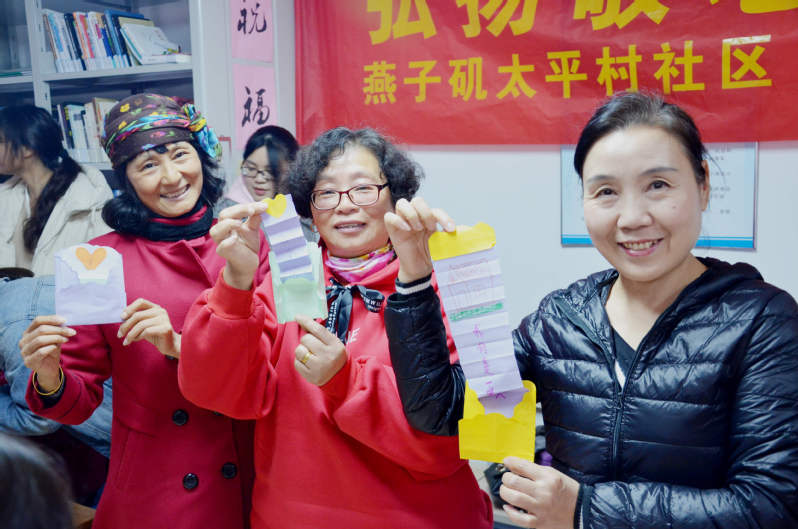2018年11月21日,william威廉英国官网社会工作协会的16名同学来到了太平村社区活动中心,开展了“温暖感恩节,祝福千万家”的社区微幸福公益项目活动。本次活动主要是教授老年人制作感恩节贺卡。