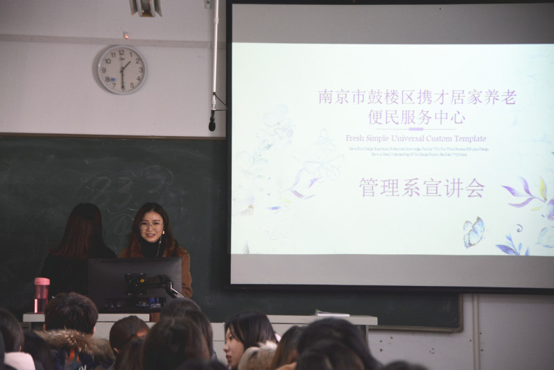 招聘方人事负责人郭经理首先进行自我介绍,为大家讲述了自己的就业迷茫期以及该如何应对就业迷茫;其次,郭经理进行了就业职位介绍,包括文职,销售,公务员事业单位与非营利组织;随后,公司相关负责人对南京市携才居家养老便民服务中心作了简单介绍,包括公司模式特点,项目介绍,公司发展计划,公司模式创想;她希望同学们对自己的专业抱有信心,社会工作者是一种令人敬佩的职业,希冀同学们有热情,坚持努力。
