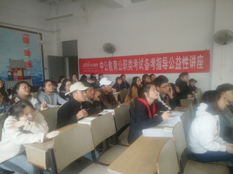 讲座上,侯老师首先系统介绍了公考的报名时间与流程,近几年的招考人数、报考人数以及注意事项。接着从自身经历和经验出发,提出了要制定适合自己的复习方案和安排好复习时间,注重发挥自己的优势,扬长避短。此外,她还列举了几道国家公务员考试中的经典例题,告诉在场同学如何快速找到关键词和如何更快提分的技巧。