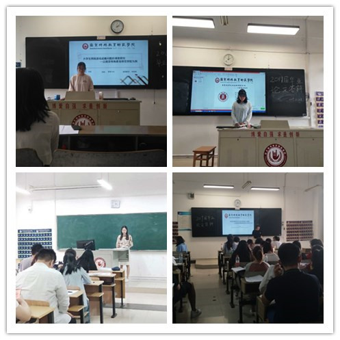 答辩由员工的PPT汇报和评委老师提问两个环节组成,答辩现场讨论热烈,学术气氛浓厚。在汇报环节,同学们准备充分,表达清晰,用简洁精炼的语言阐述了论文的选题背景、研究思路、分析过程和研究发现。接下来,老师们针对论文中存在的问题给出了建设性的意见,并与同学们就论文写作中论文的研究方法、数据来源、论文的结论、和涉及的一些基本概念等问题展开讨论。