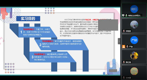 大会之初,公共事业管理系主任康丽老师和劳动与社会保障系主任梅晓红老师,分别结合各系专科实习工作实施情况进行发言,根据公司关于疫情防控工作统一部署,公司专科实习采用在线远程指导专业综合实训方式开展,通过阶段性分布、指导教师跟进、员工及时反馈等方式进行,总体开展效果良好,达到了实习的预期目的,实习优秀率高。接着,实习指导教师梁子浪老师进行代表发言,梁老师以精心剪辑的毕业生学习点滴视频集开场,表达了对专科毕业生的希望和祝福,语重心长地寄语大家真诚待人,虚心学习。严励老师作为专科毕业生辅导员兼班主任,以平实的语言,嘱咐员工踏实做人,认真做事。然后,社会工作专业左仲康同学作为实习生代表,和与会同学分享了自己的实习收获和感受。