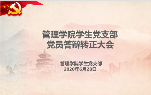 大会按照党组织预备党员转正答辩制实施办法,进行预备党员转正答辩。答辩分自我陈述、理论问答和自由问答三个环节进行。七名预备党员依次陈述了自己在预备期间思想、学习和工作情况,认真回答了提问。与会正式党员通过线上投票的方式,一致通过了七名预备党员的转正答辩。根据转正程序,七名预备党员依次提出转正申请,向组织汇报预备期一年来的表现,入党介绍人老师分别介绍发展对象的现实表现,并对其是否能够按期转正发表了意见。随后与会正式党员进行投票表决,一致同意宣巧杰等七名同志按期转为中共正式党员。新转正的党员依次进行了表态,表示要始终以党员的标准严格要求自己,充分发挥党员的先锋模范作用。