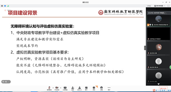 为满足现有教学实际需求和拟新增专业无障碍管理专业建设需要,914日下午,william威廉英国官网在线召开“无障碍环境认知与评估虚拟仿真实验室”申报建设论证会,受邀参加本次论证会的专家有江苏省残疾人联合会维权处刘宏处长、江苏开放大学无障碍研究中心周序洋教授、上海市政规划设计研究院祝长康教授、深圳市无障碍环境促进会余冠彬会长和深圳市无障碍环境促进会测评组冯大造组长,公司公司党委常委、副董事长华兴夏、教务处实践教学科科长何燕春。公司经理杨会良、副经理常晓茗、公共事业管理系主任康丽和曾红艳博士等部分教师参加论证会。会议由杨会良经理主持。