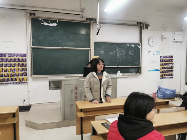 接着,由来自南京财经大学、河海大学和南京邮电大学的张祺启、万梦丽、闫白娟三位同学通过线下方式,及湖南农业大学农林经济管理硕士生李诗同学通过线上方式以自己的切身经历向同学们讲述了考研的宝贵经验,四位同学就为什么要考研以及如何考研等问题做了详细讲解,并向同学们分析了面试中的相关技巧。