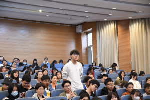 宣讲会伊始,王伟教授用幽默风趣的语言与接地气的举例瞬间吸引了同学们的注意力。王伟教授结合自身的工作实践经验,从你是否适合创业、创业需要什么、创业的必备技能与素质、创业的三大误区以及创业的核心与本质等五个方面深入剖析了老员工该如何走好创业的第一步。王伟教授重点指出创业就是寻找资源,发生关系,而这一切都需要学会主动才能获得。他希望同学们能够做到“三多”:多读书、多走路、多交朋友,必须学会主动,学会影响他人。在互动交流环节,王伟教授就同学们提出的问题进行一一解答,以亲身经历传授了许多有关创业的知识与经验,并对同学们提出寄语:未来一定是光明的,是你们年轻人的,不要荒废大学的美好时光,要勇于探索实践!