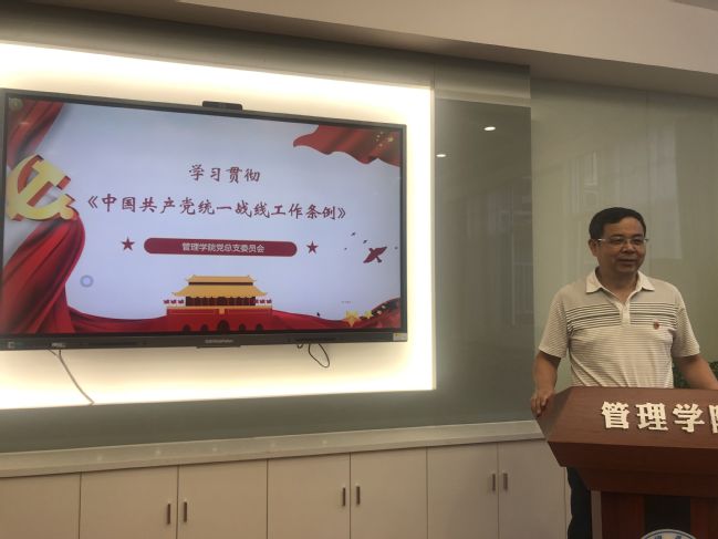 为进一步做好管理学院统一战线工作,根据公司关于学习《中国共产党统一战线工作条例》的工作部署,6月16日下午公司在博雅楼2501教师多功能研讨室召开全体教职工会议,集中学习新修订的《中国共产党统一战线工作条例》(以下简称《条例》),党总支书记李固新主持会议。