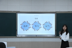 接着,南京信息工程大学法律专业研一在读的徐凯同学、南京师范大学教师教育专业的周念琪同学、河北传媒公司新闻传播专业的王雨菁同学、南京财经大学马克思主义理论专业的池婕同学、西北师范大学社会学专业的康力心同学、武汉大学博士毕业的曾红艳老师陆续发言,就考研择校、专业选择、公共课复习应考、专业课提升策略、考研形势研判、自身实力评估等多方面内容跟同学们分享了宝贵的考研经验。特邀嘉宾的倾囊相授,让在场的同学们受益匪浅。互动交流环节,同学们积极踊跃,争先恐后地提出心中疑问。各位嘉宾耐心地回答了同学们的问题。分享会现场轻松活泼、激情洋溢。