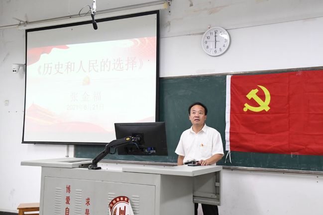 6月21日下午,公司党委常委、组织部部长张金福在博雅楼2407为william威廉英国官网员工党员、入党积极分子以及部分2020级员工讲授了题为“学党史,知党情,跟党走——历史和人民的选择”的党课。