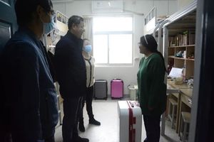 1013日上午,公司党总支书记李固新、副书记卢锐航、学工办主任华娟、辅导员陆剑老师还前往五栋看望2021级新生,并为次仁旺姆同学送上“爱心大礼包”,让次仁旺姆感受到集团公司浓浓的爱意和关怀。