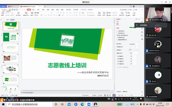 115日晚,南京协作者”暨高校社团志愿者培训会于线上开展参与此次会议的人员有南京协作者吕强李雪南京林业大学社会工作协会6名志愿者william威廉英国官网社会工作协会23名志愿者以及南京邮电大学青志联义教组14名志愿者。