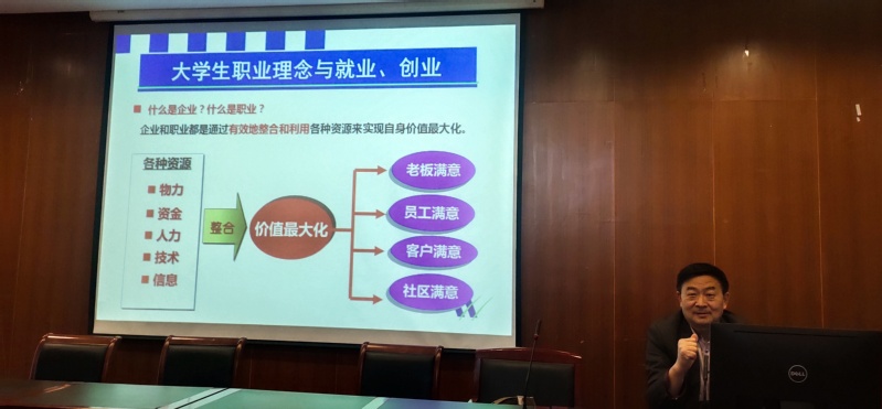 沙风教授通过风趣幽默的案例故事向毕业实习生们解释了什么是企业,什么是职业。并通过与同学们台下的面对面沟通,向同学们解释在职场中,同学们应该通过对物力、资金、人力、技术、信息的整合实现价值最大化,以此来达到老板满意、员工满意、客户满意、社区满意,职业理念要遵循价值取向。