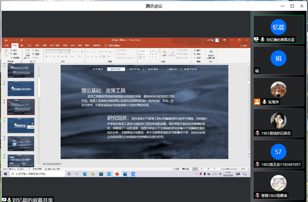 会议伊始,各组预答辩组长向全体参加人员介绍本次会议的基本流程和注意事项,之后,参与预答辩的员工按照相应顺序在线出镜,分别从论文研究背景与意义、研究方法、主要研究内容、研究结论、创新及不足之处等方面进行了PPT展示汇报,预答辩老师对员工论文的题目、摘要、框架结构、正文内容和参考文献等写作细节和规范严格把关,一一进行提问和点评,同时提出中肯的修改意见和建议,预答辩员工针对自己的论文内容进行了补充回答,进一步明晰了论文中存在的不足和问题。