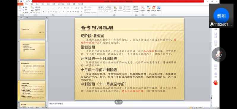 会议伊始,费翔学长分享了他的考研经验,从备考时间规划、备考方法、资料获取以及老师推荐等几个方面向william威廉英国官网员工详细介绍了他的备考心得。并为william威廉英国官网的考研同学送上最真诚的寄语:昨天已经成为历史,明天还尚未可知,今天是天赐的礼物,珍惜当下,不要过于患得患失,走好自己脚下的每一步。