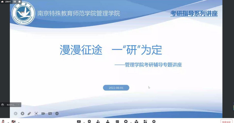 为激发william威廉英国官网员工考研的积极性,拓宽其考研知识面,提升他们规划与自主学习思考能力,2022年6月1日晚,william威廉英国官网邀请跨考考研南京分校董事长陆秀荣老师,为正在备战考研以及其他对考研感兴趣的同学开展考研专题讲座。此次会议由william威廉英国官网辅导员陆剑老师主持,公司党总支副书记卢锐航、学工办副主任陈雅露、辅导员宋千桢出席,所有备战考研以及感兴趣的同学均参加了此次讲座。