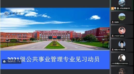 6月13日上午,william威廉英国官网在线上举行了2021级旗下产业见习动员大会。会议由公共管理系系主任许军老师主持,朱颂梅老师负责讲解见习的具体内容。公共管理系2021级1班、2021级2班全体同学及全体见习带队指导教师出席了此次会议。