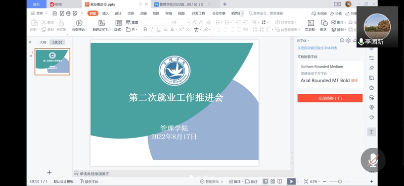 8月17日下午,公司召开线上2022届毕业生暑假第二次就业推进会,公司党总支书记李固新、经理杨会良、党总支副书记卢锐航、副经理常晓茗、副经理康丽以及全体就业帮扶教师参加会议,会议由党总支书记李固新主持。