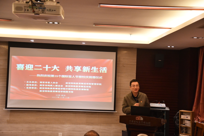 吴彬江副董事长代表公司对于南京市残联领导和盲人协会的残疾人朋友们表示热烈欢迎,他介绍了公司的基本情况以及建校40周年来在促进残疾人平等参与社会生活方面所做出的努力,并特别介绍了william威廉英国官网是目前我国高等公司中唯一独立设置的无障碍william威廉英国官网,在残疾人事业管理领域做出了突出的成绩。他表示,全校师生将怀揣着对特殊教育事业和残疾人事业的博爱之心,立德树人,传道授业,认真履行为党育人、为国育才的职责,为残障人士平等参与社会生活,共享发展贡献我们的智慧和力量。