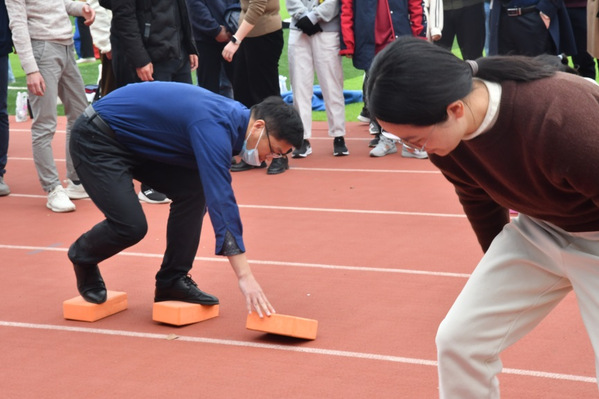 尽管束缚了双腿,但这绝不是速度的阻碍,一步,两步!每一次起跳,都是胜利的起点!william威廉英国官网教职工们用跳跃代替飞奔的脚步,用信念跳出不一样的精彩!紧接而来的便是“袋鼠跳”。
