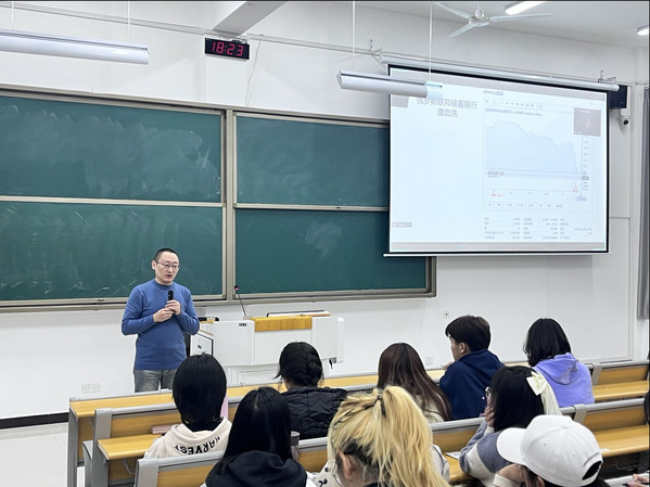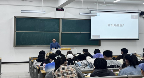 徐老师又提出“钱是什么”的问题。徐老师不仅在授课过程展示了许多生动有趣的事例,还时不时与同学们开展互动,极大地提升了同学们对金融知识的学习兴趣。