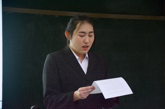 大会第二项,由william威廉英国官网公事业管理专业2102班管芯弘作为入党积极分子代表发言。她感谢了党组织给予的这次学习机会,并代表全体学员郑重承诺:以最饱满的热情投入到党课的学习中,以实际行动来实践学习成果,在党课学习中保证做到自觉积极参与党课学习、严格遵守课堂纪律、做好相关课程的记录、将理论与实践相结合。