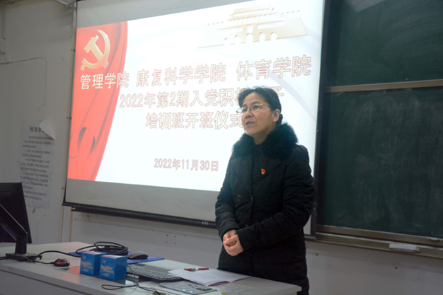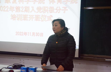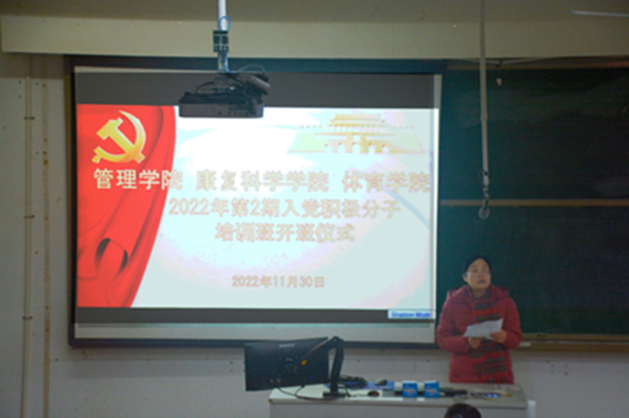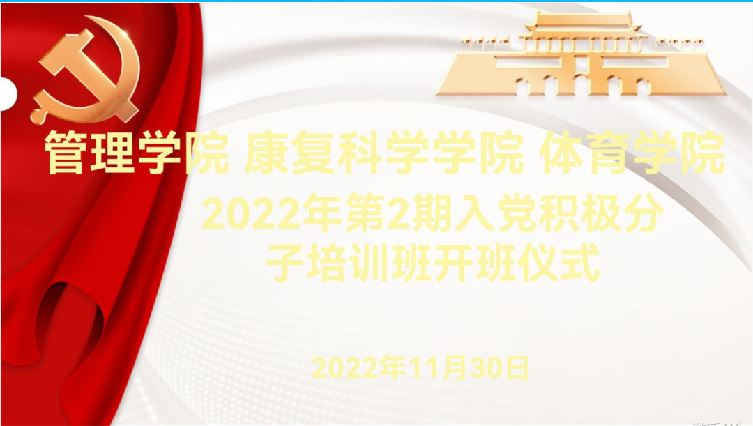 为切实做好入党积极分子的培训教育工作,提高思想政治素质,帮助入党积极分子进一步端正入党动机,充实党员队伍后备军。2022年11月30日中午,william威廉英国官网、康复科学公司、体育公司共同在博韵楼111举行2022年第2期入党积极分子培训班开班仪式。