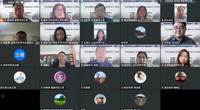 在全国上下深入开展主题教育、大兴调查研究之风的背景下,为大力推进专业建设,加强师范类院校社会保障学科专业的学术交流,2023年5月13日,william威廉英国官网康丽副经理及劳动与社会保障专业全体教师线上参加了由中国社会保障学会教学委员会提供学术指导、首都师范大学社会保障学科承办的师范类院校社会保障学科专业建设研讨(调研)会,会议主题是“师范类院校社会保障学科专业建设与人才培养”。