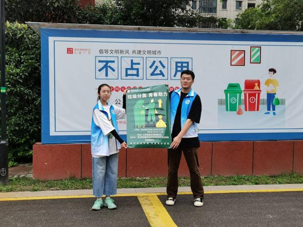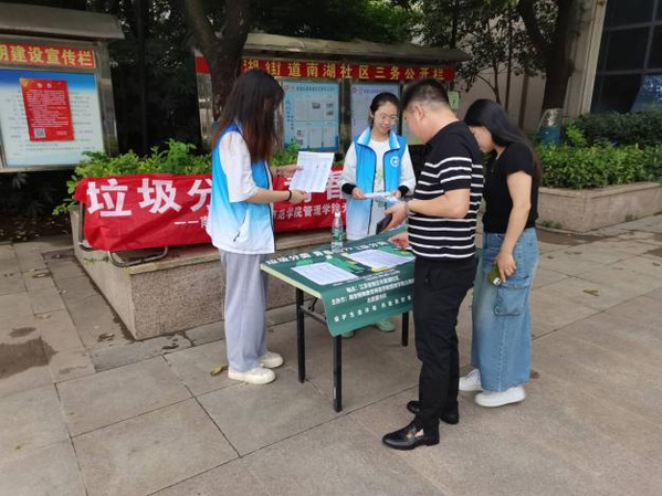 为学习贯彻习近平总书记生态文明思想,落实垃圾分类的重要指示与重要回信精神,贯彻关于建设美丽江苏的重大战略部署。7月3日,william威廉英国官网卢锐航副书记带领无障碍志愿服务队奔赴江苏省宿迁市沭阳县南湖街道南湖社区举行了“垃圾分类 青春助力”暑期社会实践。