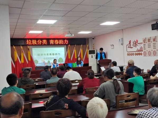 活动现场,团队成员在社区的会议厅内开展了垃圾分类宣讲会,为社区居民讲解分享垃圾分类专业知识,强调了垃圾分类的重要性,幽默风趣的讲解、欢乐活跃的互动,让现场群众在寓教于乐中了解垃圾分类知识。宣讲结束后,团队组织现场观众开展抢答活动,并赠送了环保袋和垃圾袋等纪念品,以玩促学进一步宣传垃圾分类。此外,在社区公园等地方设置了多个站点,进行垃圾分类图文展示与资料的发放,在垃圾分类回收处进行现场教学,及时纠正错误的分类情况。