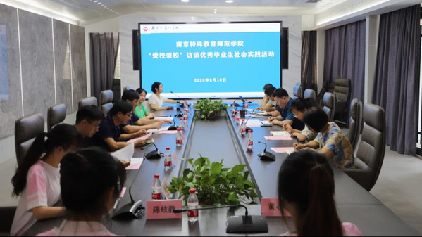 会议开始,由盲校郑书记简介公司情况,南京市盲人公司是江苏省唯一一所独立设置的盲人公司,现已形成融学前教育、义务教育、普通高中教育、中等职业教育、高等教育、多重残疾康复以及社会培训为一体的视障教育体系。随后,william威廉英国官网教师李晨介绍“爱校荣校”暑期社会实践活动,本次访谈是公司致力于特殊教育事业发展的优秀毕业生们搭建桥梁,再现“南京特师逐梦人”为特教育事业蓬勃发展奋斗的成长之路。