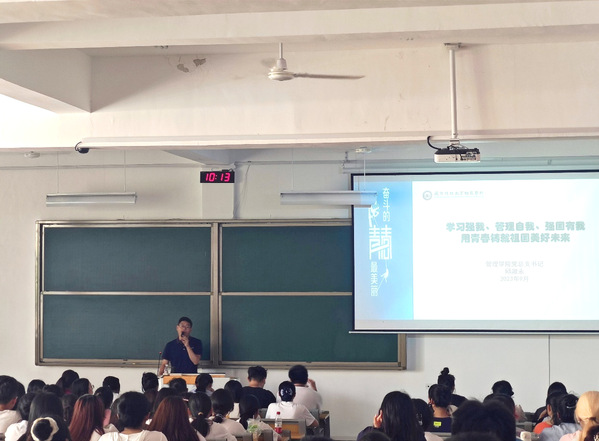 邱淑永书记从三个方面开展思想教育。一是学习强我,了解大学的意义与目的。通过不断修炼、学习,提高认识世界的维度,去理解人生、洞悉世界,看更加绚丽辉煌的世界。二是管理自我,“学会独立、学会选择、学会奋斗”有直面现实的勇气、有超越苦难的精神、有披荆斩棘的勇气、有创造未来的胆略,永葆激情和梦想,铭记感恩和责任。实现人生理想,成为栋梁之材,不辜负青春,遇见最好的自己。三是强国有我,勉励管院学子,把个人成长融入新时代发展之中,把理想信念融入实现中华民族伟大复兴事业之中。谨记“无我”方成“大我”、“无用”可堪“大用”、“无为”方担“大任””,秉承南京特师的“博爱情怀、与国同行”的光荣传统。成为党和人民需要的“大用”之才。涵养集聚众智的浩然之气,担起时代重任。