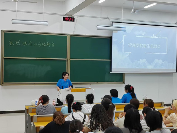 会议开始,辅导员陆剑老师代表管院全体师生对23级新生们的到来表示热烈的欢迎与祝贺。随后陆剑老师向新生介绍了公司的基本情况和公司的各项规章制度,并且重点强调了关于考试及宿舍等方面的注意事项。同时,也就学习方面提出了几项建议,勉励新生们合理规划自己的老员工活,努力学习,不断加强自身修养和提高整体素质,自立自强,做到学有所成,做有所为。