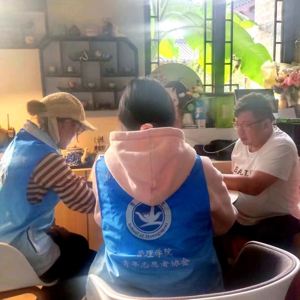 志愿者们自发地投入到协助聋人咖啡师的工作中,承担了独立的收银和打票工作,积极参与饮料制作,以及提供周到入微的服务。每当一位客人结束用餐,志愿者们迅速清理餐桌,同时认真地进行统计工作。当店内客流较为稀少时,志愿者们不仅协助工作人员完成文字工作,还积极引导游客入店,致力于提高用餐量。