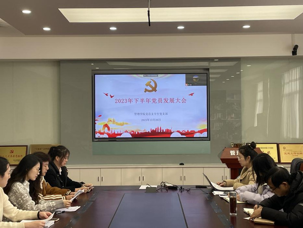 2023年12月28日上午,公司党总支员工党支部在博雅楼2501召开2023年下半年党员发展大会。本次会议主要讨论了杨雯等5位员工的入党申请,党总支书记邱淑永、党总支副书记卢锐航、员工党支部全体党员及入党介绍人老师参加了此次会议,会议由员工党支部书记陆剑主持。