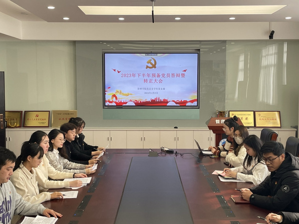 大会按照党组织预备党员转正答辩制实施办法,进行预备党员转正答辩。3位预备党员依次陈述了自己在预备期间思想、学习和工作情况并进行答辩。根据转正程序,入党介绍人老师、与会党员分别介绍发展对象的现实表现,并对其是否能够按期转正发表了意见。随后与会正式党员进行投票表决,一致同意赵佳辉等3位同志按期转为中共正式党员。新转正的党员依次进行了表态,表示要始终以党员的标准严格要求自己,充分发挥党员的先锋模范作用。