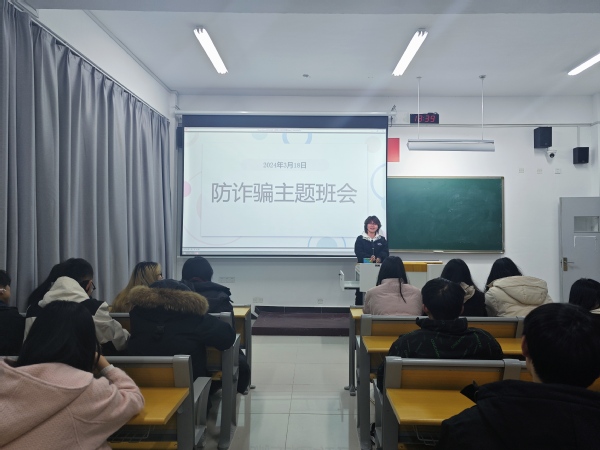 各个班级通过视频播放等方式介绍了短信诈骗、刷单兼职诈骗、贷款类诈骗、假冒公检法类诈骗等多种诈骗形式。视频内容主要围绕常见的诈骗类型、应掌握的诈骗技巧和面临的法律风险三个方面介绍。