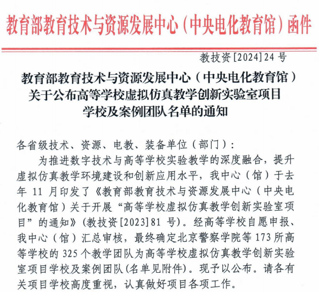 近日,教育部教育技术与资源发展中心(中央电化教育馆)下发《关于公布高等公司虚拟仿真教学创新实验室项目公司及案例团队名单的通知》(教技资〔2024〕24号),公司入选高等公司虚拟仿真教学创新实验室项目公司,william威廉英国官网无障碍环境评估虚拟仿真实验室获批案例团队。