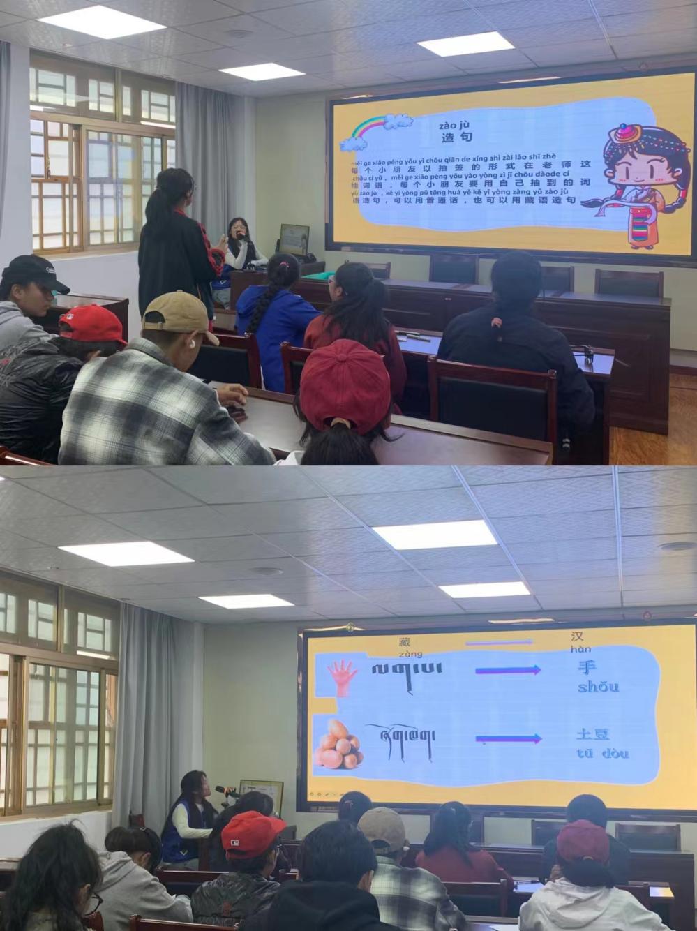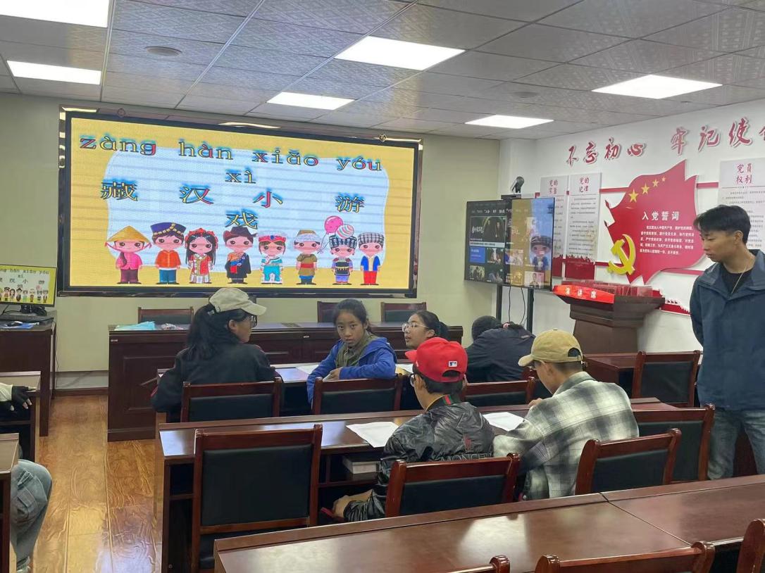 授课环节,志愿者们以藏汉翻译、自我介绍和简要造句为实践内容,引导员工体验普通话的运用。互动环节的设计不仅提升了员工的参与度,也使他们在快乐中感受到学习普通话的乐趣,增强了他们的语言表达能力。