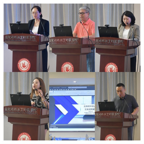 康丽副经理主持了下半场的专题演讲。经理杨会良作了题为《无障碍管理专业人才培养实践与探索》的报告,他指出,开设无障碍管理专业是得天独厚,恰逢其时。他首先阐述了无障碍管理专业设立的时代背景与意义,阐释了无障碍管理专业创设的理念与系统设计,总结和展示了无障碍管理专业建设开办以来在实践探索中取得成绩,并提出无障碍管理专业未来之理路。中国建筑标准设计研究院主任李姝婷所作的《<无障碍环境建设法>建设工程领域研究与实践》报告,通过实践案例展示了如何在建筑设计和施工过程中贯彻无障碍法规要求,确保项目能够满足各类人群的需求,提升整体的无障碍水平。深圳大学本原设计研究中心无障碍所所长刘芳所作的《无障碍设计与研究的初步探索》报告,分享了本原设计研究中心在无障碍设计方面的初步研究成果。她通过具体的设计案例,展示了如何在日常生活中实现无障碍设计,提升不同人群的生活品质,并强调了持续研究和创新的重要性。中国船级社质量认证公司无障碍业务中心技术总监陈兴华作的《无障碍环境认证实施规则解读》报告,详细解读无障碍环境认证的具体实施规则,介绍了中国船级社质量认证公司在无障碍环境认证方面的流程和标准。苏交科集团股份有限公司副总工程师贲庆国所作的《基于老年人和残障人士便利化交通出行研究》报告,分享了苏交科集团股份有限公司在老年人和残障人士的便利化交通出行问题领域的研究成果,通过分析具体交通系统的设计和改进方案,展示如何通过技术创新和优化管理,确保他们能够安全、便捷地使用公共交通设施。
