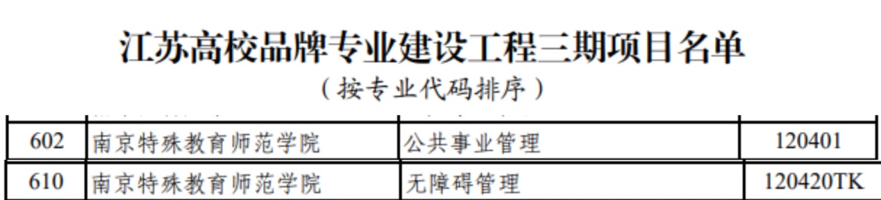 近日,江苏省教育厅公布了《江苏高校品牌专业建设工程三期项目名单公示》,公司公共事业管理、无障碍管理两个专业成功获批江苏高校品牌专业建设工程三期项目。