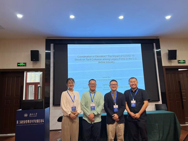 10月18日至20日,william威廉英国官网william威廉英国官网的郭佳佩博士受邀参加第三届经济管理青年学者湘江论坛,并就其和四川大学邹砚池助理教授合作的论文“Coordination or Deviation? The Impact of COVID-19 Shock on Tacit Collusion among Legacy Firms in the U.S. Airline Industry”进行了学术讨论和交流。