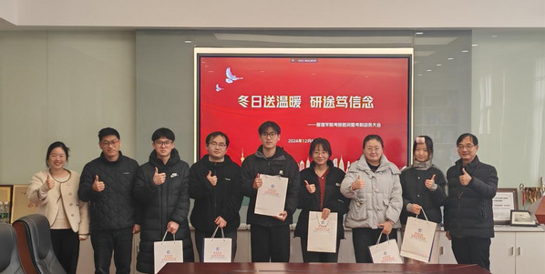 邱书记首先对考生们表示关心和慰问,强调考研是人生的重要阶段,鼓励同学们坚定信念,克服困难,为梦想努力拼搏。此外,卢书记建议同学们要保持积极乐观的心态,学会调整情绪,以最佳的状态迎接挑战。公司还为各位同学精心准备了考研慰问品。这一份贴心的礼物,不仅为学子们提供了实质性的帮助,更传递了公司对每一位学子的关心与期望,相信每一位同学都能发挥出自己的最佳水平,实现自己的人生目标。