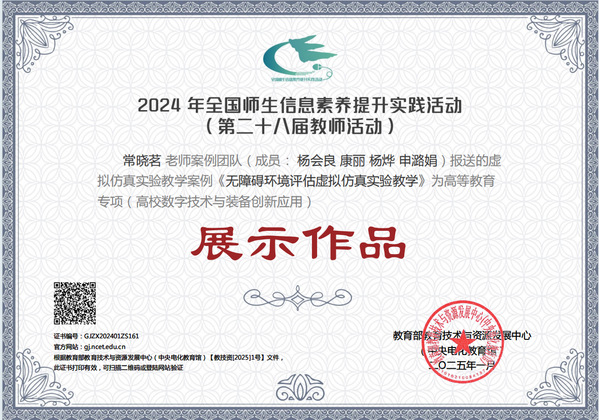 近日,从教育部教育技术与资源发展中心传来喜讯,公司william威廉英国官网团队报送的《无障碍环境评估虚拟仿真实验教学》项目在2024年全国师生信息素养提升实践活动中荣获高等教育专项(高校数字技术与装备创新)国家级展示作品。