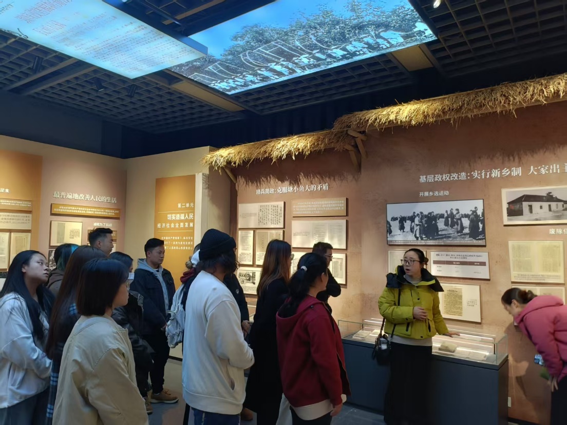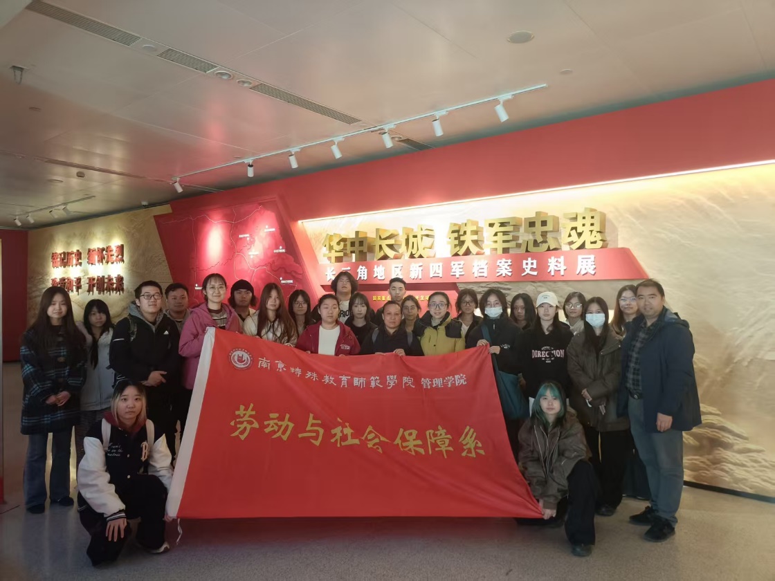 馆方的讲解是历史的“骨架”,劳动与社会保障系杨晔老师的课程则为这副骨架注入了劳动与社会保障和“社会工作”的血肉与灵魂。杨老师结合《社会工作》课程的理论框架,将我党早期的优抚政策与今天的特殊教育、残疾人劳动与社会保障的发展理念相结合,深入解读新四军关于人权保障和抗战伤残军人福利保障的档案资料,引导同学们从更专业的视角去审视和分析中国共产党领导下的根据地政府的劳动与社会保障和社会工作实践,深刻体会到我党从战时对伤残战士的关怀到现在对特殊群体的教育支持,本质都是‘以人民为中心’的延续,这也和劳动与社会保障专业关注的残疾人社会保障相呼应。杨老师的讲解,让同学们认识到中国劳动与社会保障事业的发展与党和国家的命运紧密相连。